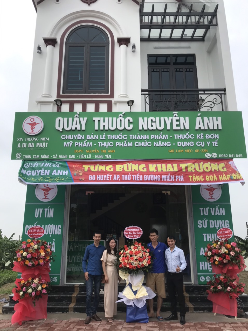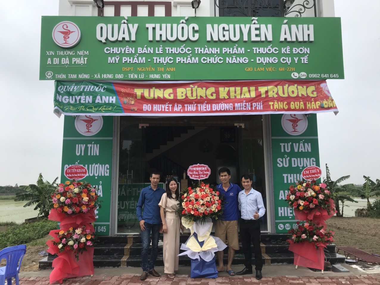 Ngày 6/7 vừa qua, đại diện công ty cổ phẩn Dược Phẩm Hoa Việt chúc mừng quầy thuốc Nguyễn Ánh nhân dịp khai trương