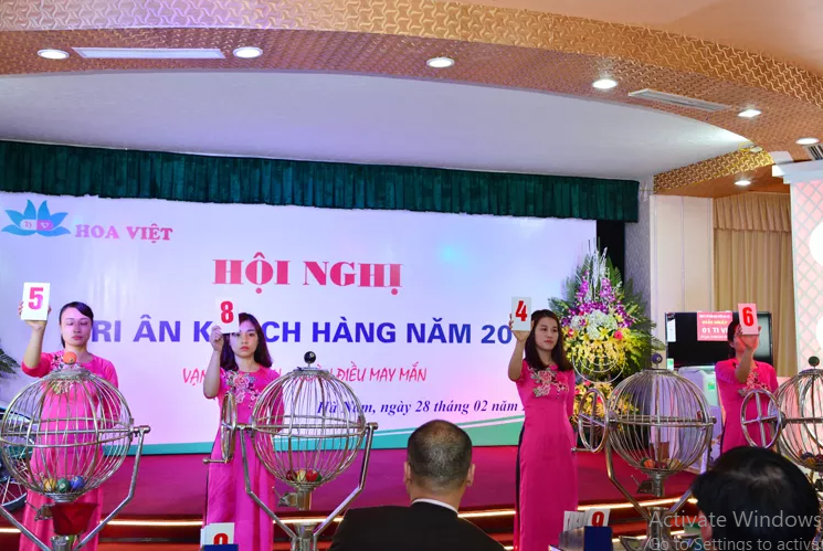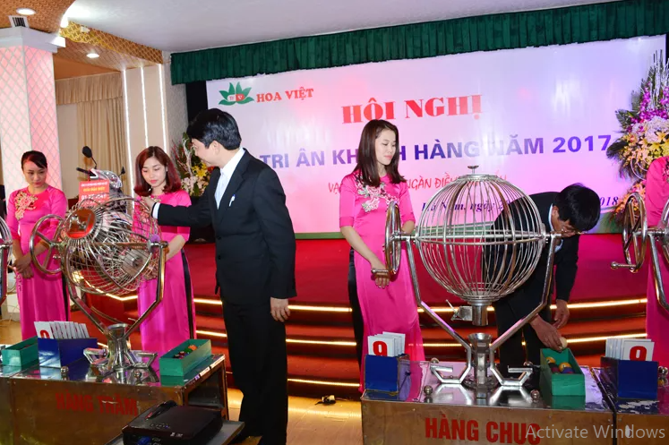 Để đảm bảo tính khách quan, trung thực và công bằng cho tất cả các khách hàng, khi quay số, Công ty Hoa Việt đã mời Công ty Xổ số kiến thiết Hà Nam đến quay số trúng thưởng. Trước khi quay, Ông Dương Đức Tiến cùng 1 vị đại diện khách hàng lên kiểm tra lồng cầu và bóng.