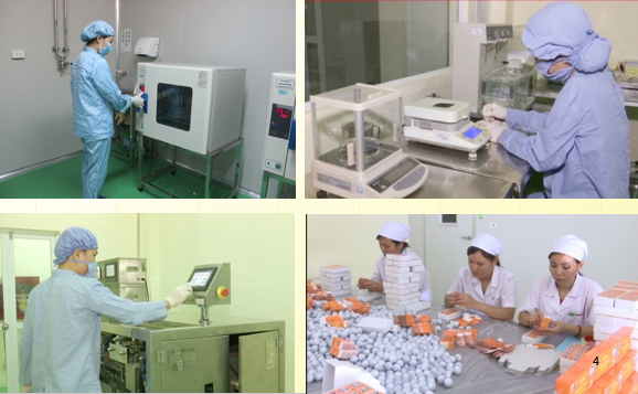 Nhà máy sản xuất thuốc đông dược đạt GMP – WHO với đa dạng dây truyền sản xuất: Viên nang mềm, viên nang cứng, viên nén, viên bao phim, bao đường, siro dạng vỉ, cốm, …. đã cho ra đời những sản phẩm thuốc ưu việt về mặt chất lượng, tiện ích trong việc sử dụng theo đúng như phương châm công ty đã chọn: “ Thuốc tốt cho mọi nhà”.