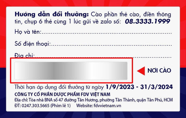 Cảo phần thẻ cào, điền thông tin, điền đầy đủ thông tin, chụp 6 thẻ cùng 1 lúc và gửi về zalo số 08.0000.1999